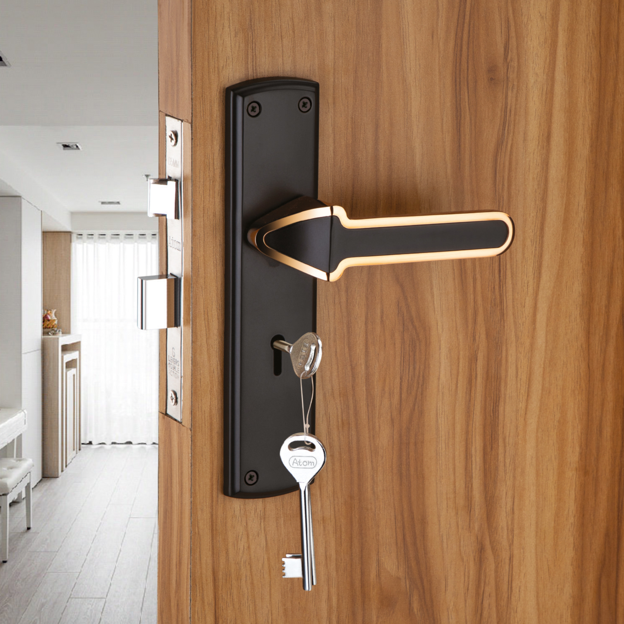 Not at all. It’s lightweight, uses standard fittings, and can be installed on most wooden doors without rewiring.