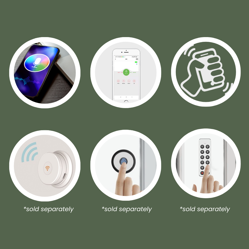 6 ways to unlock (app, shake, Siri, fingerprint, PINs, or Wifi). Perfect for families, guests, or anyone who hates carrying keys.